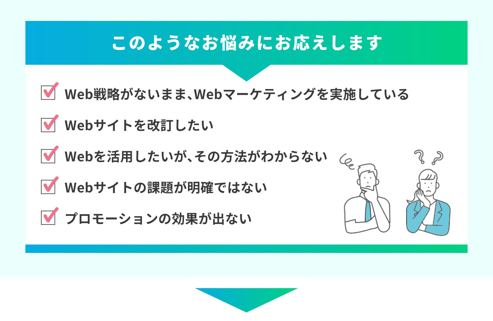 現状の課題を整理し、サイトの目的を明確にするところからお手伝いします。
